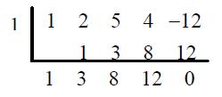 因此 $x=1$ 必为 $x^4+2x^3+5x^2+4x-12=0$ 的根,因此由综合除法可得: