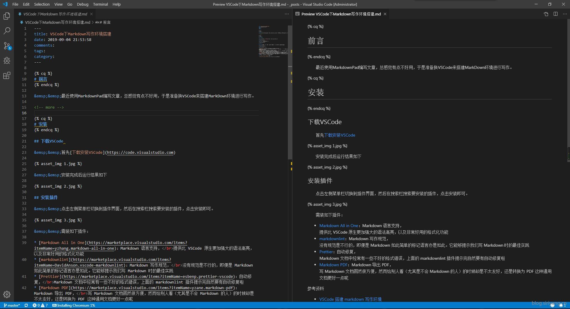 最近使用MarkdownPad编写文章,总感觉有点不好用,于是准备换VSCode来搭建MarkDown环境进行写作。