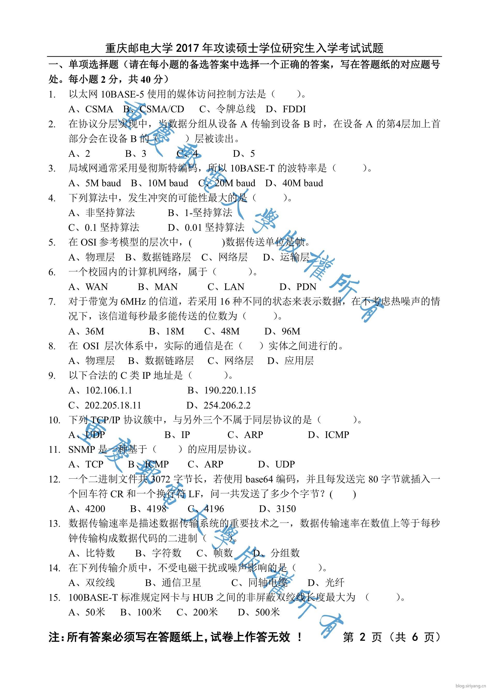重邮《计网803》历年真题与答案解析全套PDF电子版已上架我的面包多商铺,欢迎前往咨询购买!