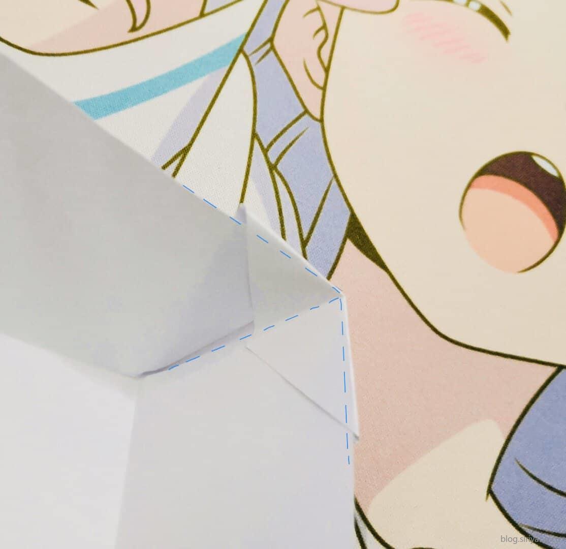 翻折下来以后就是这个样子,盒子的一个角就完成了。