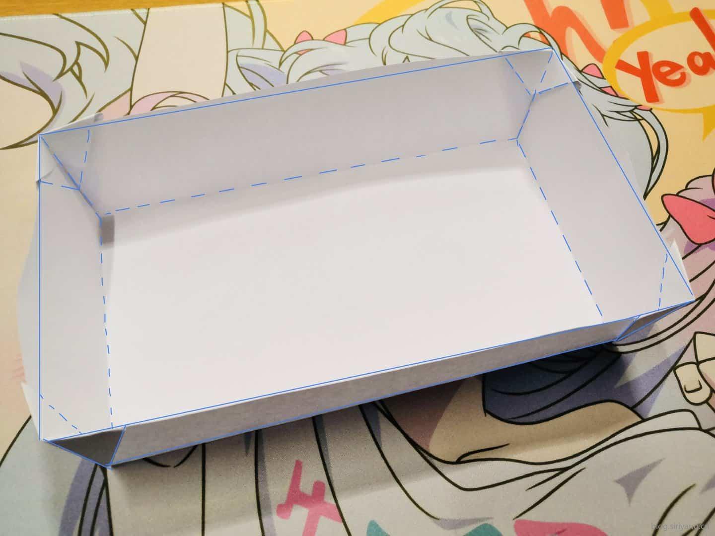 不过注意只需要在右下边上压一个能分辨出中轴线的印记就行,不需要把中间压实,不然最后盒底有条线不平坦不好看。