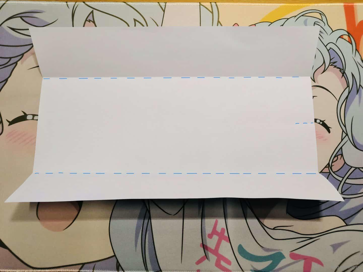 此时再对齐中轴线把下方翻折上来,然后下边用力压实。