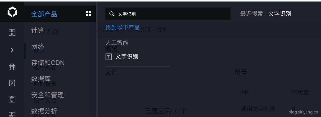 登陆百度云,不是云盘那个云,是云计算的云。然后在产品目录搜索“文字识别”。