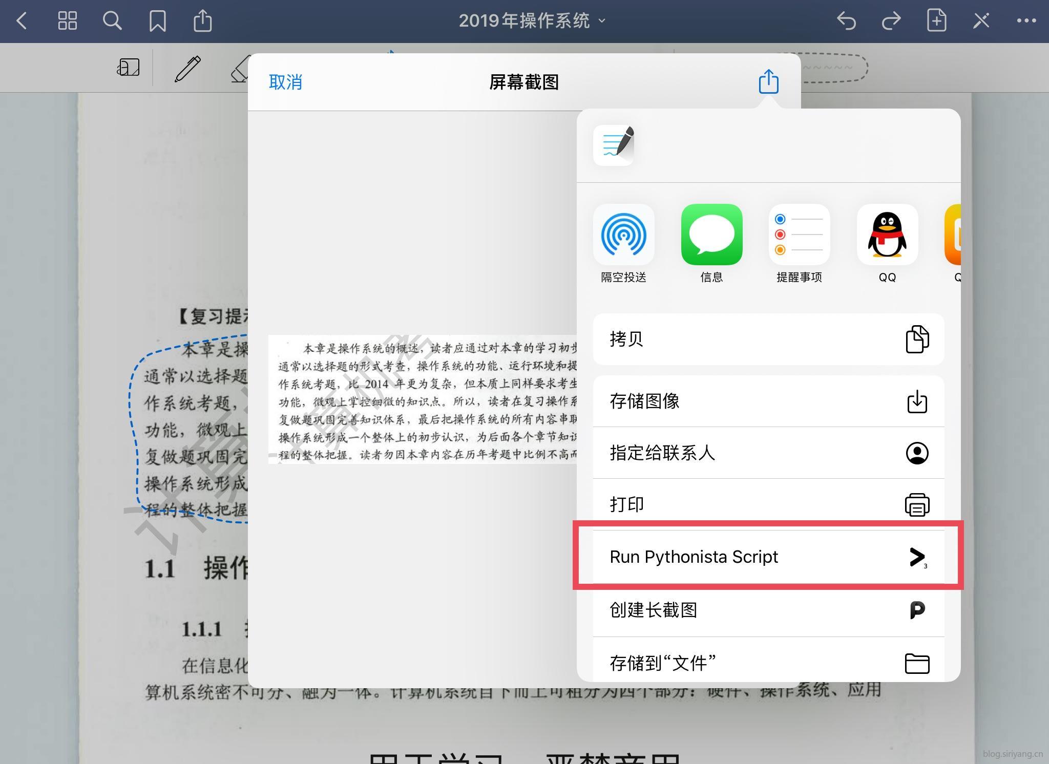 你需要选择一张图片,并将它分享到分享面板或者复制到粘贴板再打开分享面板都可以,代码会先查找是否有分享的图片,没有的话再检查粘贴板里有没有图片。比如说我这里是GoodNote中框选的一张截图。