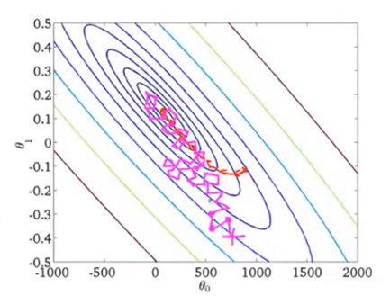 通常我们在进行特征缩放的时候将范围大致限定在$-1\le x_i \le 1$范围内。