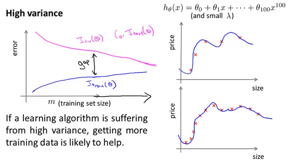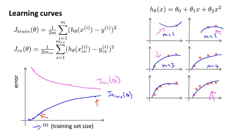 如果观察到 $J(\theta)$ 曲线在上升或者在上下震荡,通常的办法是降低学习率 $\alpha$。