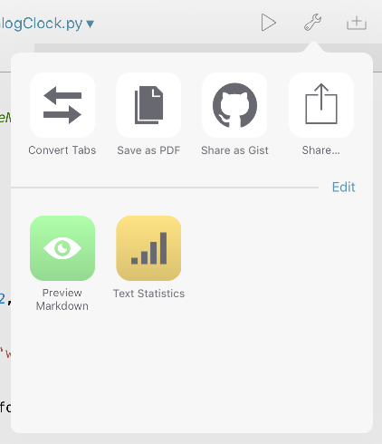 编辑器的一个非常强大的功能是它本身是可编程的。你可以使用editor模块替换文本,定位光标等。然后可以将自己的脚本添加到动作(“扳手”)菜单,以便在处理代码时可以直接从编辑器中运行它们。