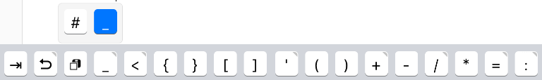 首先,键盘包含带有特殊字符的附加键,这些键对于编程非常有用。这些附加键也可以用作手势区域:你可以用手指在它们上滑动以移动光标,这使精确定位更加容易。