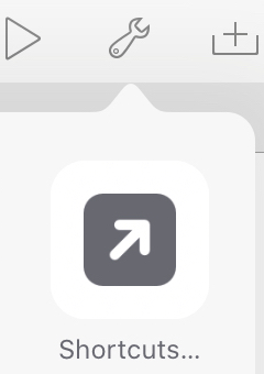 大多数功能可以通过点击编辑器中的“扳手”按钮,然后选择“Shortcuts”进行可以访问。