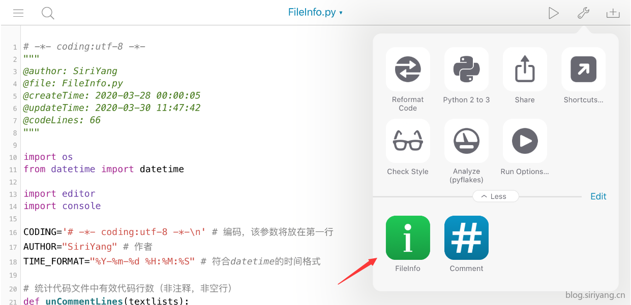 不过好在Pythonista作者为我们提供了editor模块,可以对Pythonista编辑器本身进行开发,也就为我们编写一个自动化维护文件信息的脚本提供了可能。