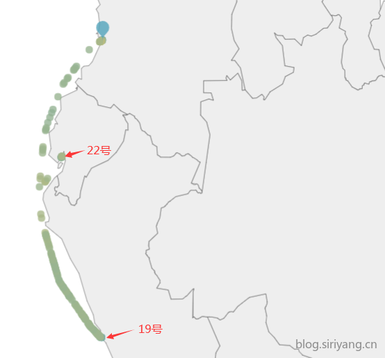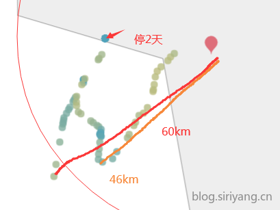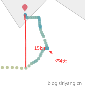 6、有个别订单只有初始港附近有数据点,而且红色箭头所指的地方密密麻麻一堆速度为0的点