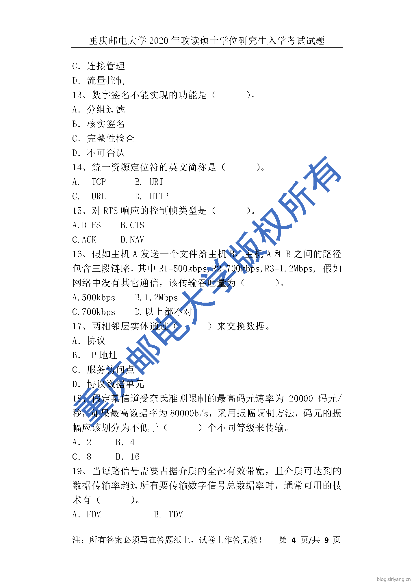 重邮《计网803》历年真题与答案解析全套PDF电子版已上架我的面包多商铺,欢迎前往咨询购买!