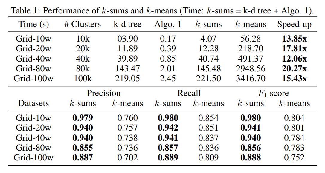 在大规模数据上,k-sums算法也表现出了十分令人满意的性能。