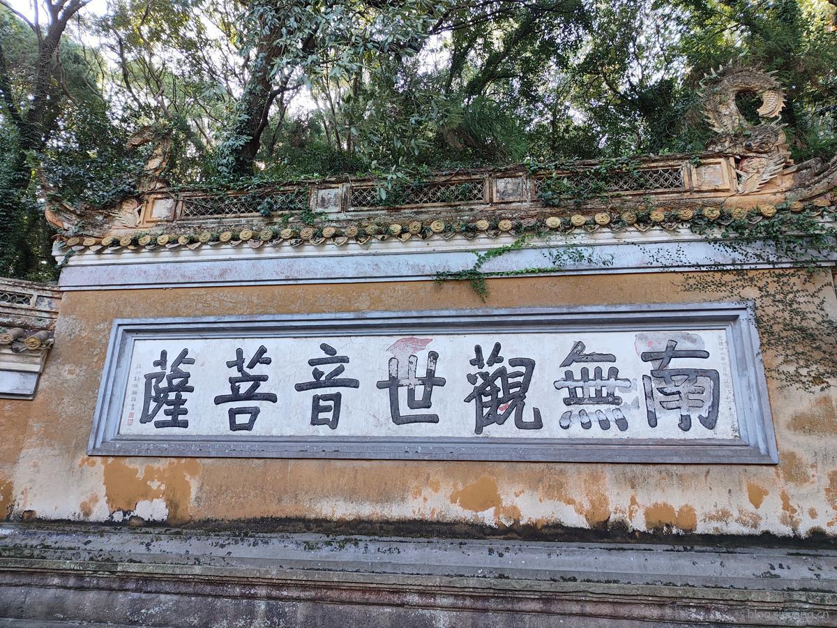 据说普陀山是观音的道场,所以整个山上的寺庙主要都是供奉的观音菩萨,前来朝拜的人嘴里都念叨着“大慈大悲观世音菩萨”,好多墙上也都可以看到“南无观世音菩萨”的字样。