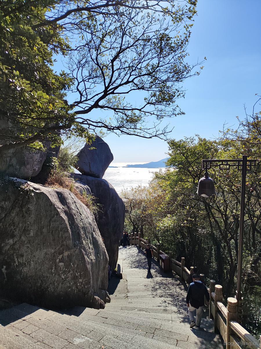 下山的路大部分都还是在树林里面穿行,直到在一个巨石转角后豁然开朗,可以直接眺望到远处的大海,顿时感觉心灵也跟着舒展开来。