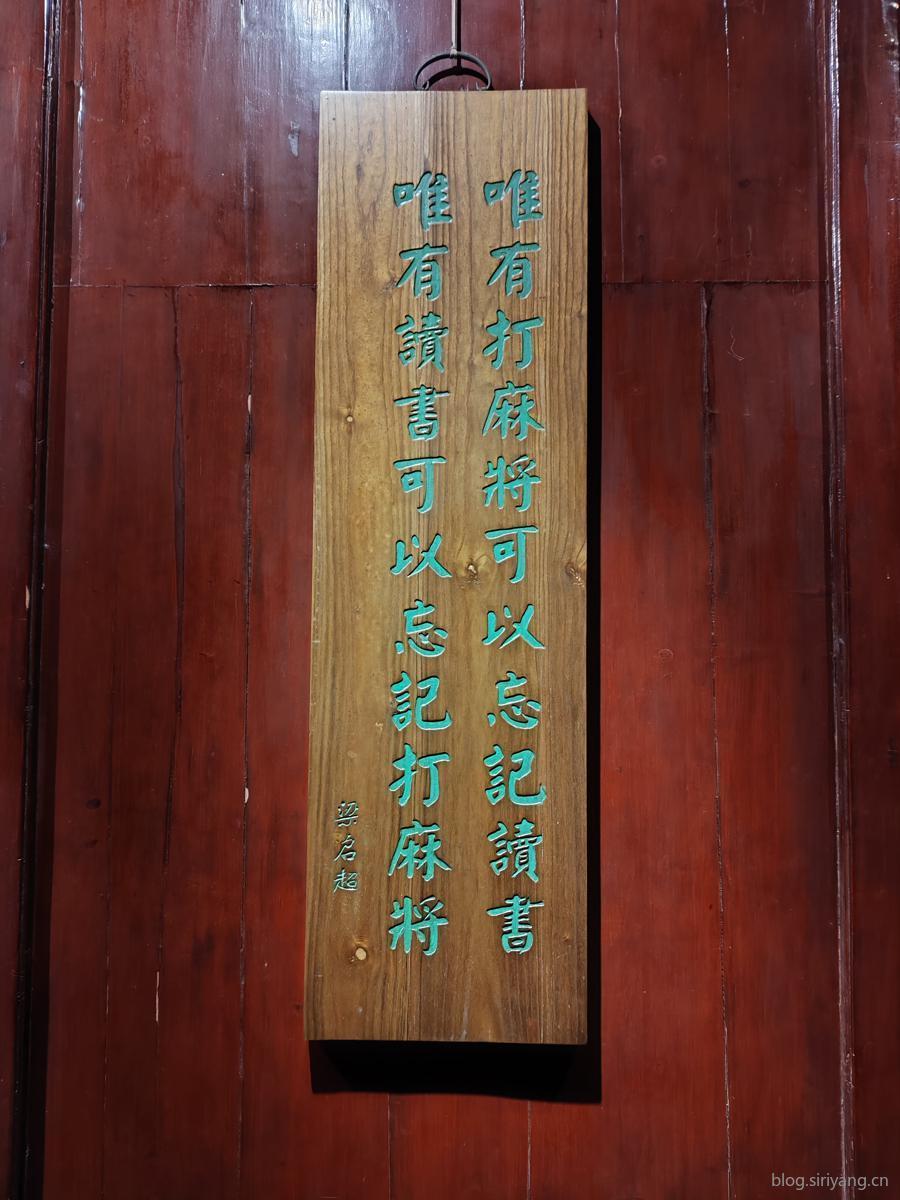 同样也是在这个展厅里,还有一块梁启超写牌匾吸引了我的注意力,让我想到了爱打牌的胡适。