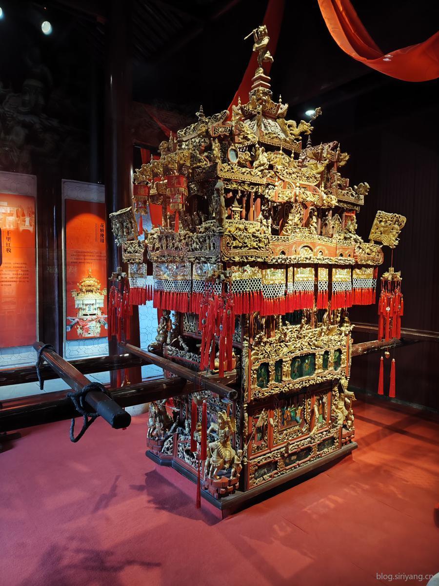 其中一个展馆里陈列的花轿给我带来了强烈的视觉冲击。上面是各种木雕,实在是过于精致,不禁让我怀疑这个真的可以坐吗,生怕给碰坏了。