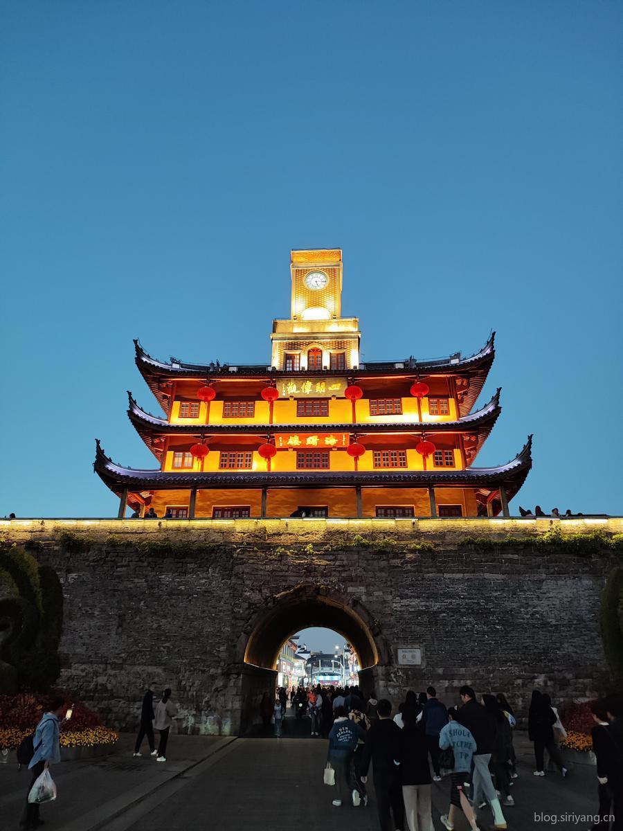 天色渐暗,我们在月湖没有作过多的停留,从旁边一条街市穿过就直接到了到鼓楼。很多城市都有一个叫鼓楼的地方,这个鼓楼比较有意思的地方是在于其下半部分是传统的中式建筑,中间却长出了一个西式的钟楼。