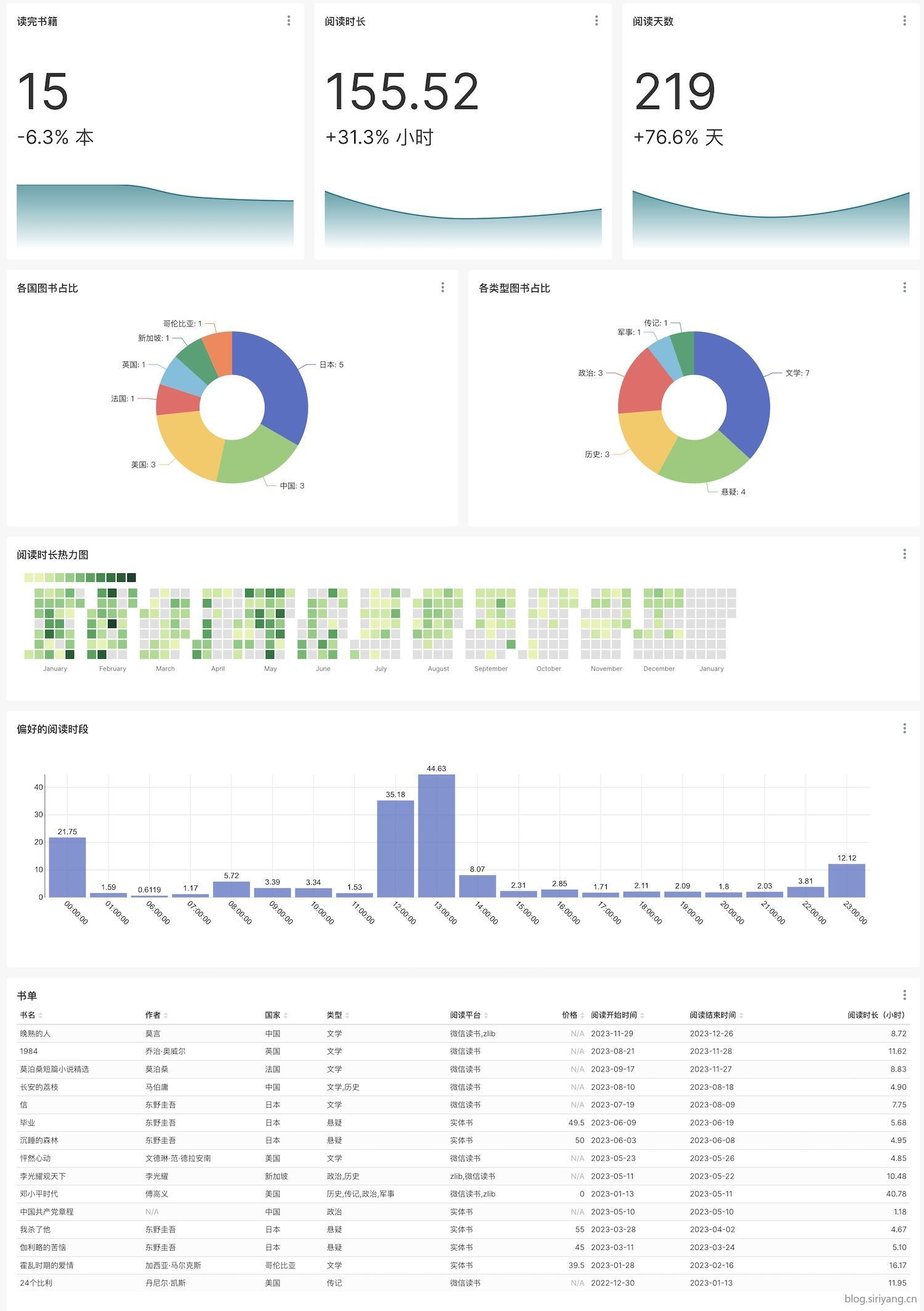 22年下半年开始搭建的个人的数据解决方案,经过23年持续不断地打磨沉淀,数据记录流程更进一步简单化、自动化,实现了各种精细化的个人数据需求定制,并衍生出相关的应用服务。23年在游戏、播客数据记录方面提升较大,数据不再像过去一样记录于各个平台,散乱且不可掌控,向数据自由的目标又更进了一步。