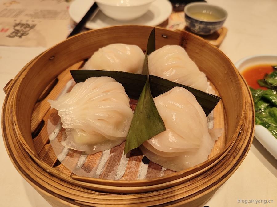 之后菜品也陆陆续续的上了上来,首先尝的第一个就是虾饺。第一次吃正宗的虾饺,完全颠覆了我对虾饺的认知。之前在公司吃虾仁的饺子,饺子里也就一个虾仁,但他这个里面全是虾,起码有三只以上,味道也很不错。