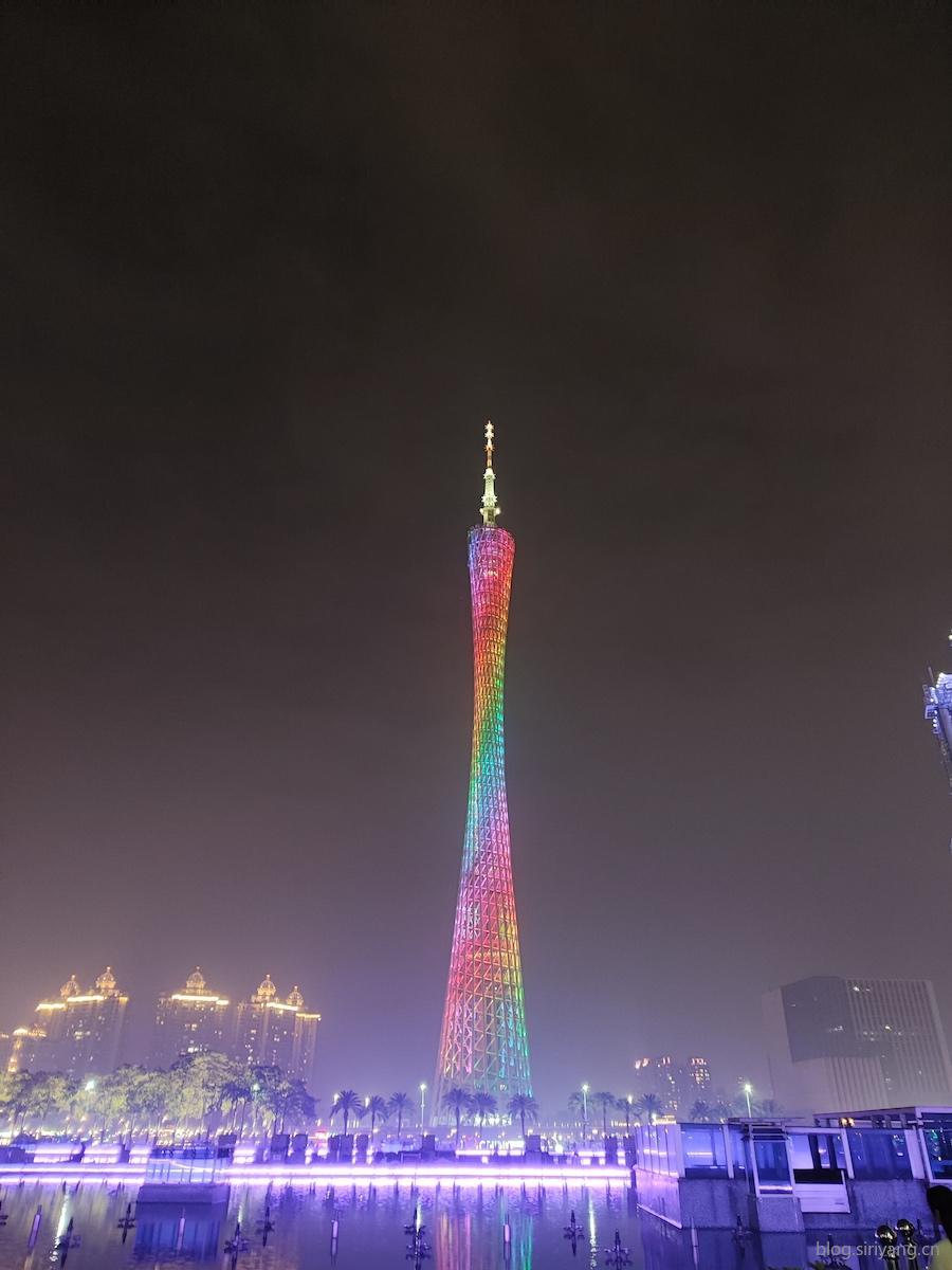 后来第二天晚上又去看了下广州塔的夜景。当天下了点雨,晚上七点过的样子雨停了,但外面还是雾蒙蒙的,能见度不是很高,还有点担心会不会影响看广州塔,等到了的时候发现基本已经恢复的差不多了。