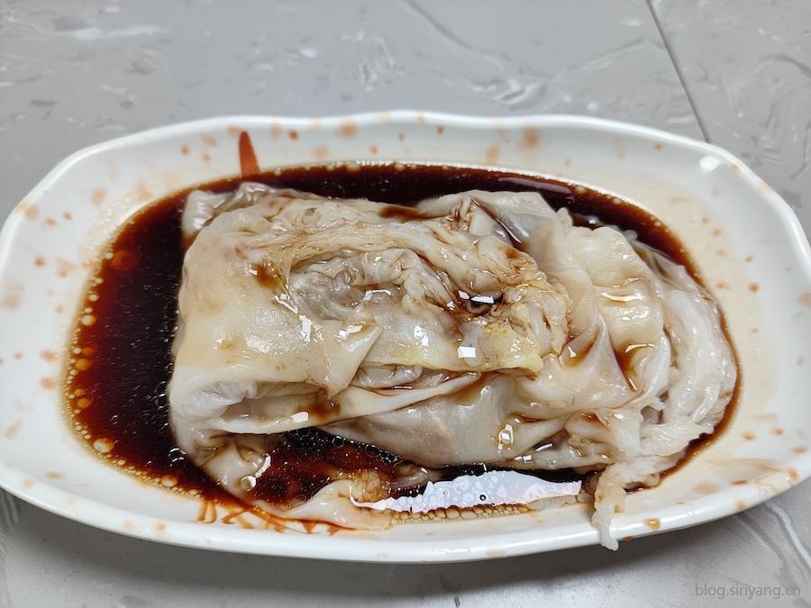 点了一份猪肝肠粉,才八块钱。整体味道偏甜口,猪肝没有腥味。肠粉感觉比我之前吃的要更糍实一点。
