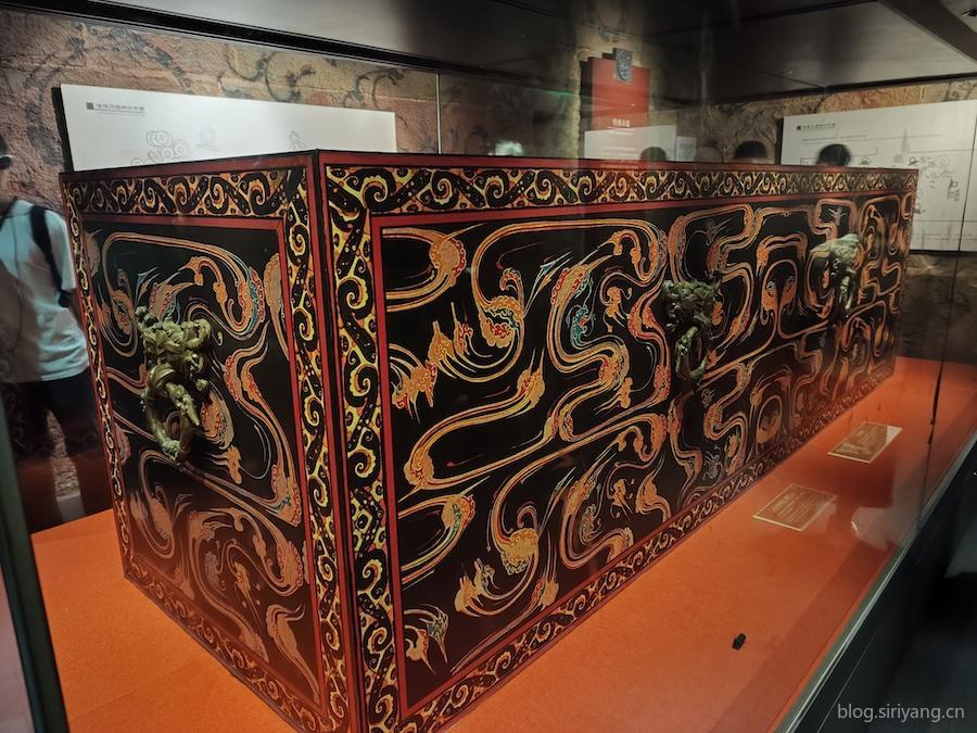 棺椁上面的漆画特别鲜艳漂亮,不知道是不是后期修复过的。