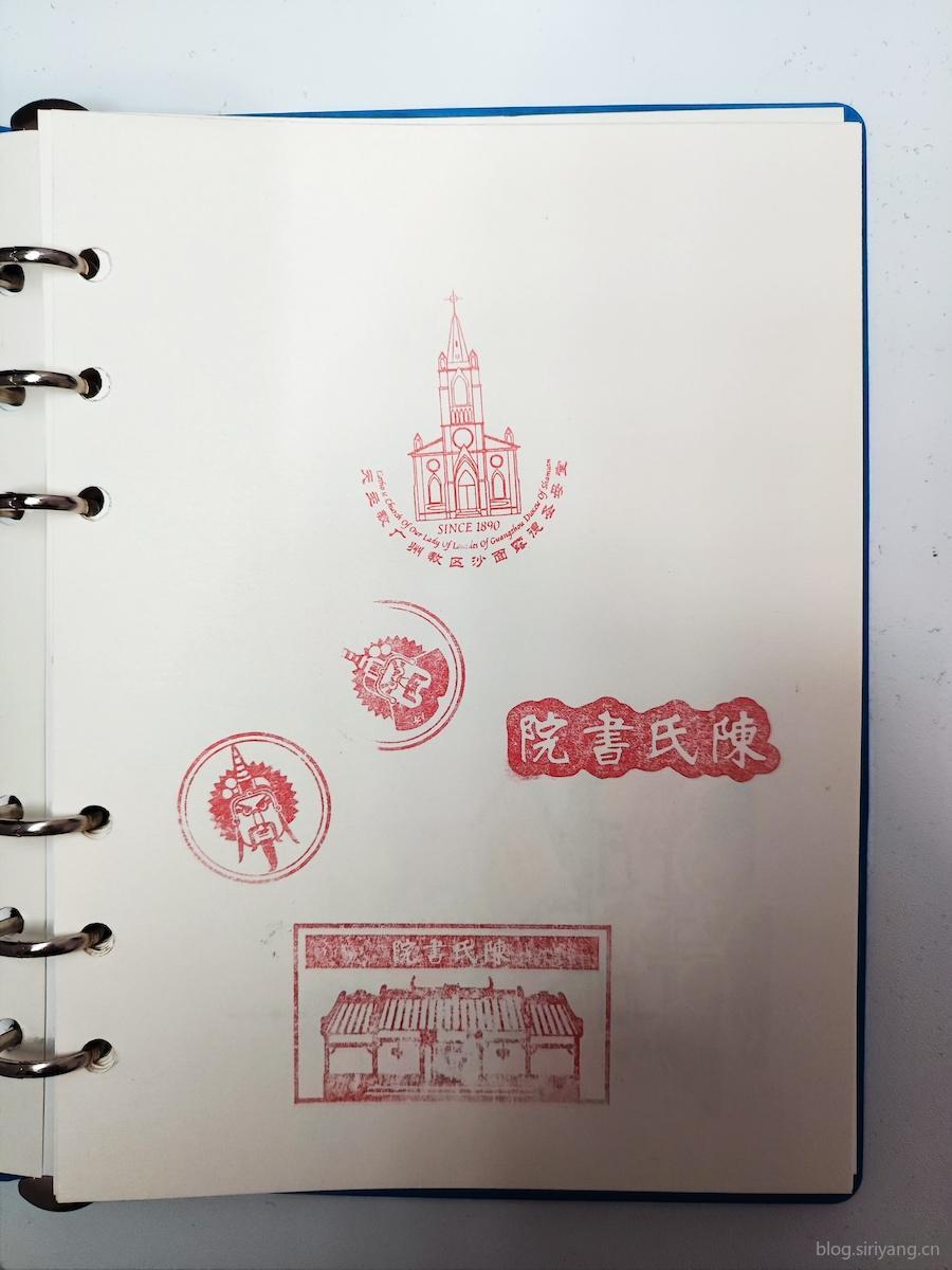陈家祠一共有四个章,有两个都没印的太完整,稍微缺了一小块,或者颜色不是太深。后来看了下小红书了解的,盖章的时候应该按压个几秒钟,让颜色深一点。