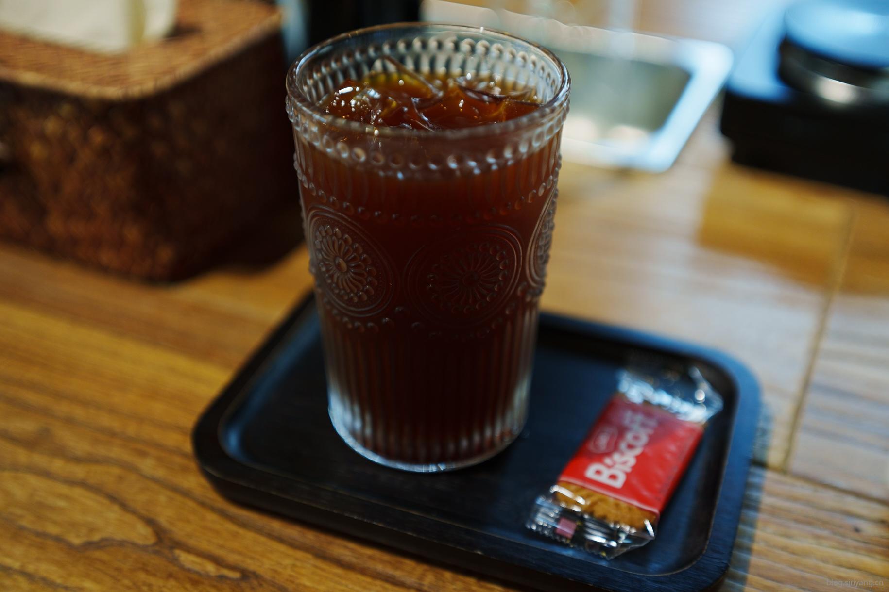 由于下午三点出门有点困,顺路去东桥对面找了个大众点评上评分还不错的咖啡厅,点了一杯椰汁冰美式,还附送了我比较喜欢吃的焦糖饼干。