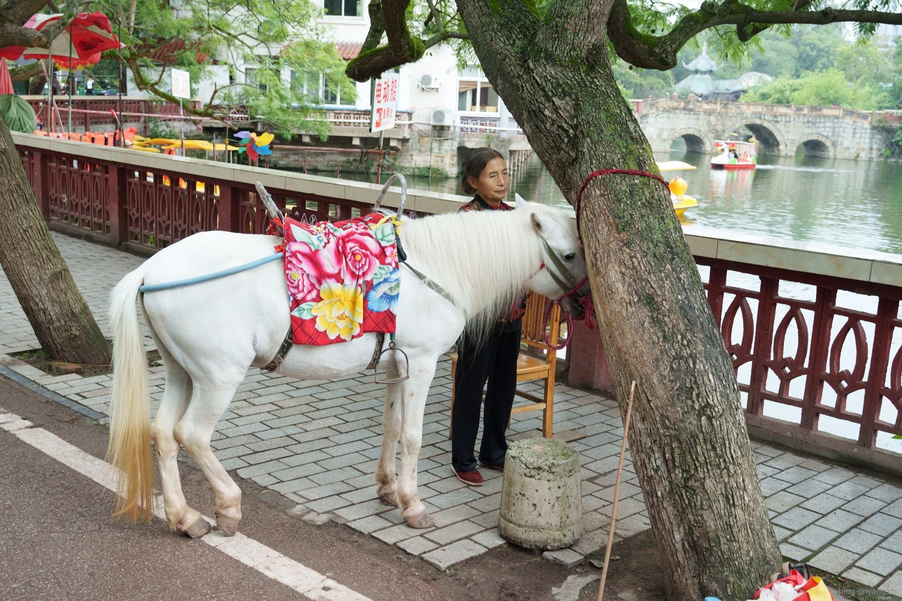 以前小时候还在公园里坐过白马,但这一匹肯定不是当年的那一匹了。只记得当时那匹有点脏兮兮的,骑上去能闻到很大一股马的骚臭味。