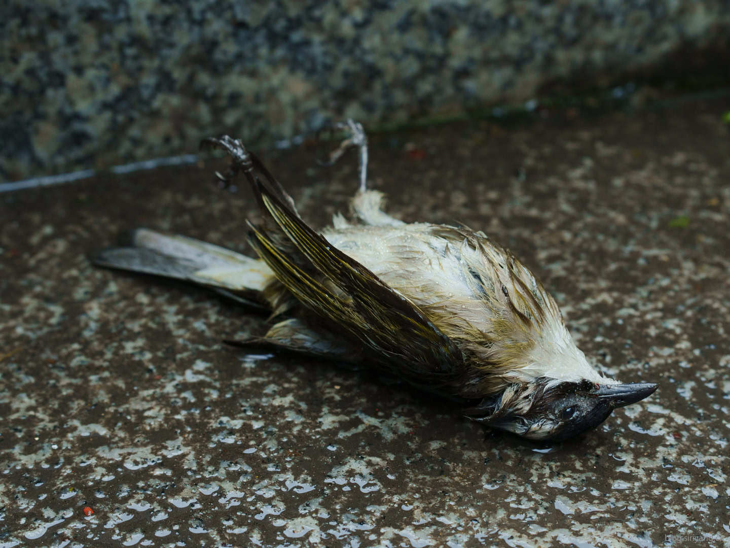 从基督教堂走下来的阶梯上,发现一只死去的麻雀。