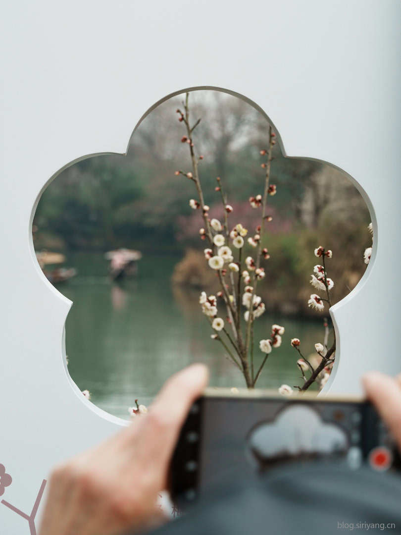 一个老爷爷正举着手机,透过梅花形状的镂空处拍摄梅花。而我站在老爷爷的背后,试图把他拍摄梅花的画面拍摄下来。手机上的红色快门键像是点睛之笔,给颜色平淡的画面增添了一抹灵气。让我想到了《辛德勒的名单》里穿红色裙子的小女孩。
