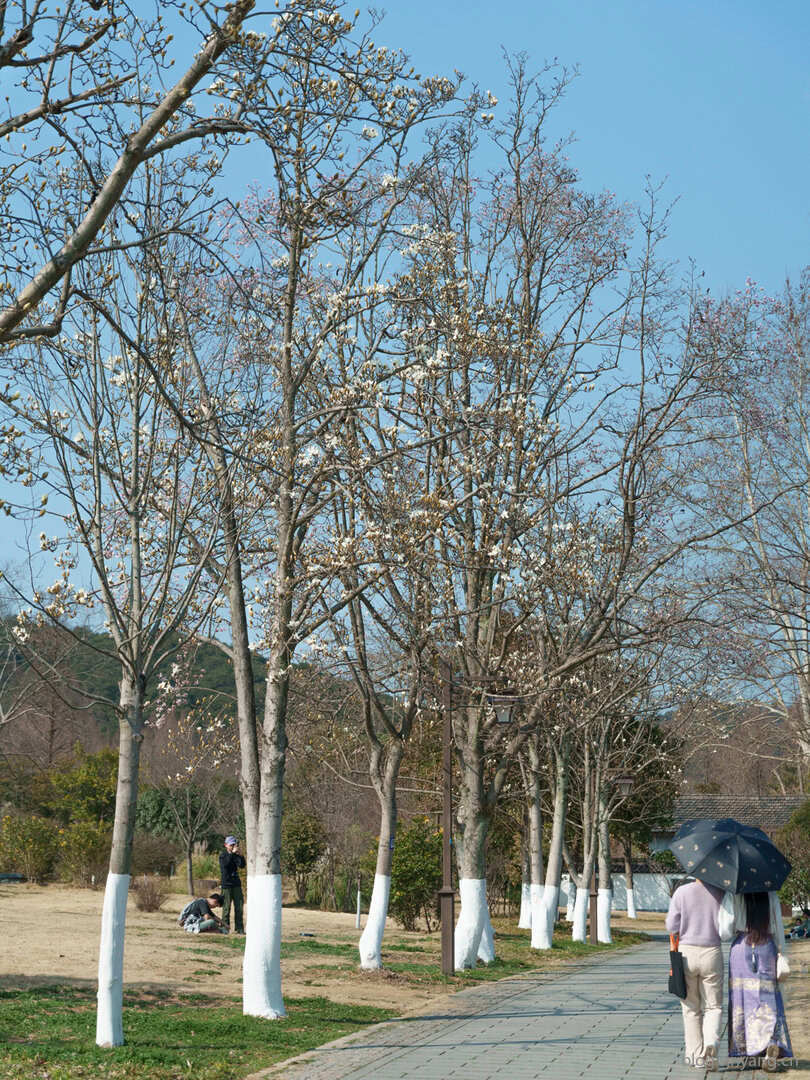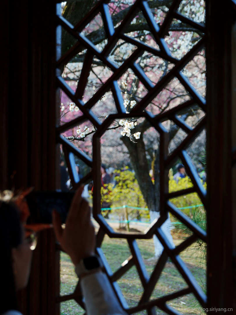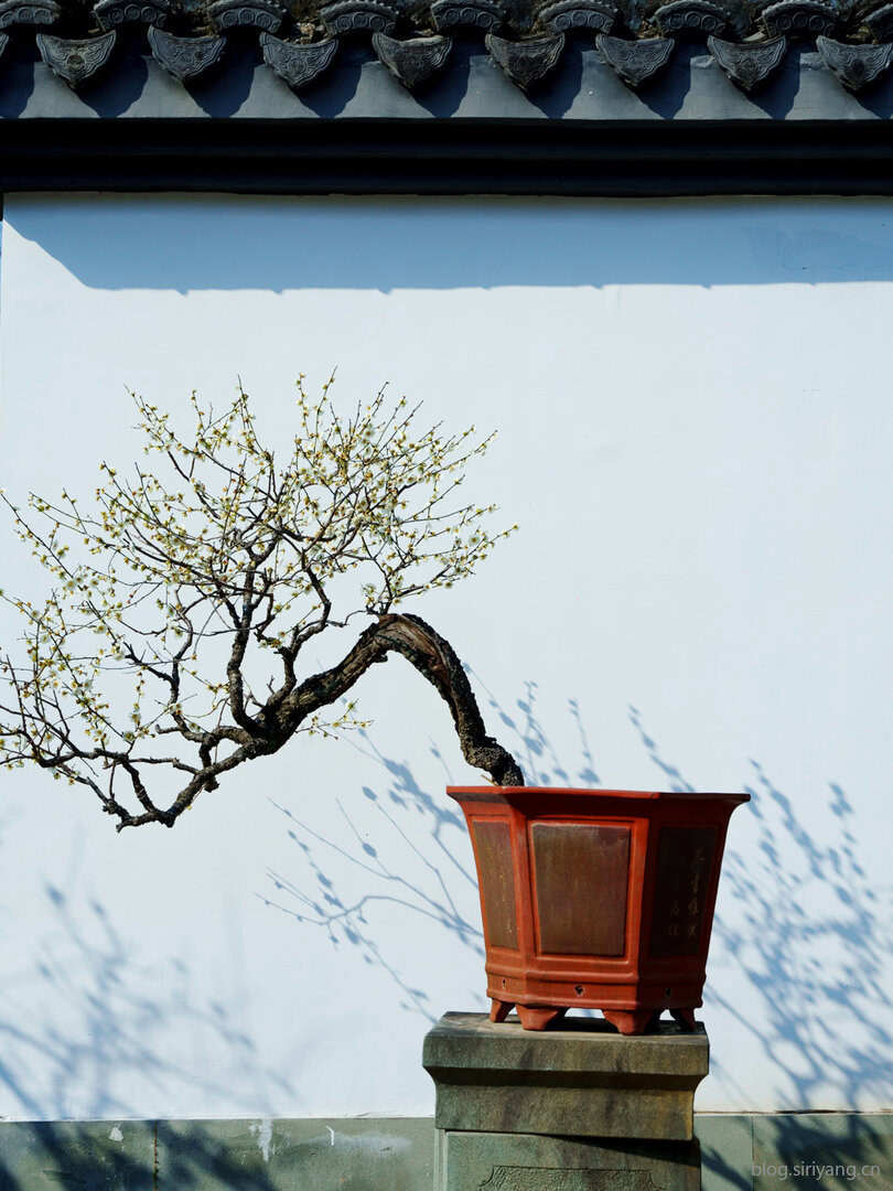 - 盆景园的人流量相对较少,但都是小株的盆景梅花,以白墙青瓦作为背景,适合拍特写。