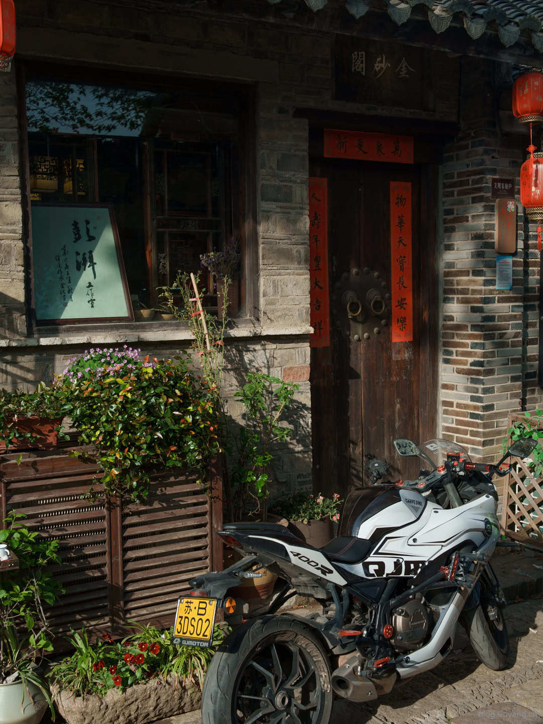 当逛完一圈回来,发现老街入口处停了一排酷炫的机车。与古朴的老街建筑行程鲜明的对比。