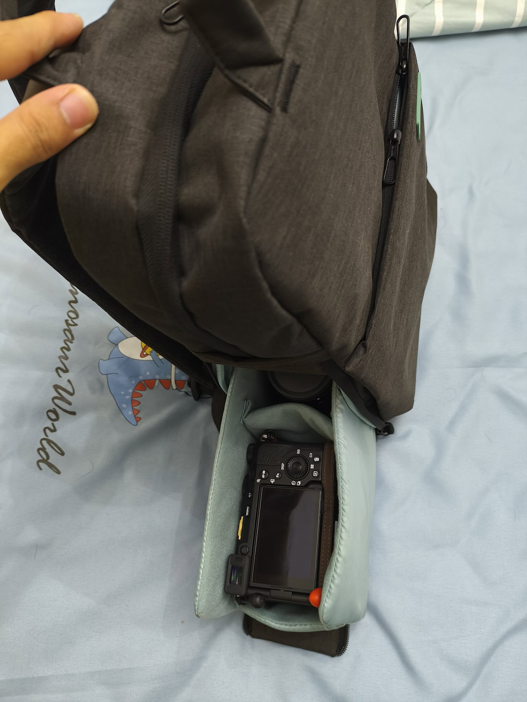 去年去香港时背的这款宜丽客的双肩包,陪我穿梭于城市街道,和太平山的山间小道。被我的各种东西塞的鼓鼓囊囊的,容量刚刚好。但这包有个缺点就是没法装三脚架,还好我现在还没有使用三脚架的场景。卓尔的那款斜挎包到是带了三脚架的绑带。