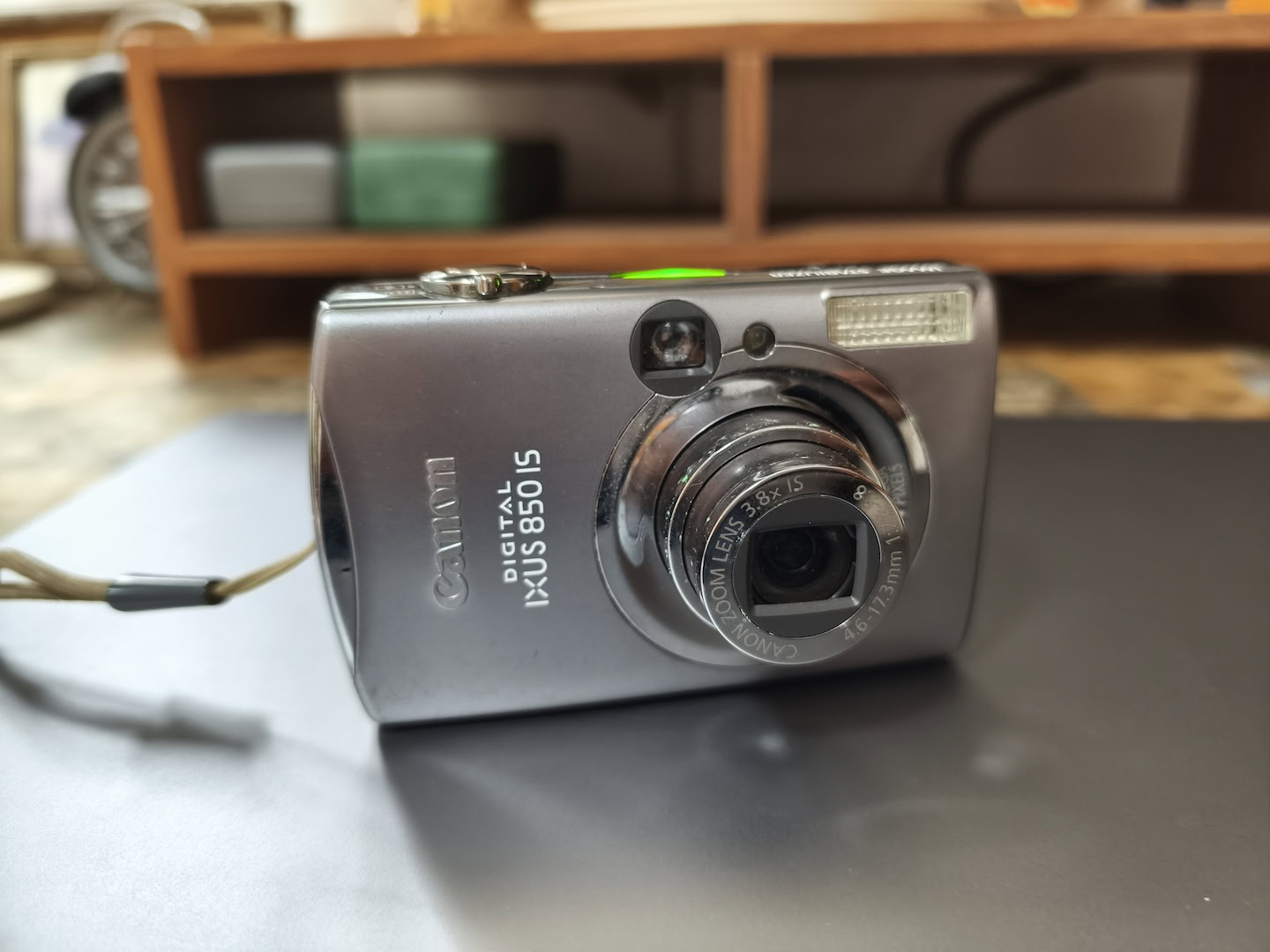 其实高中时,亲戚还送过我一台旧相机。但因为那台相机画质不太好,所以也没怎么用过,一直丢在抽屉里吃灰。今年过年回家的时候想起来,还特意翻出来把玩了一下。发现竟然是最近摄影圈炒的比较火的CCD相机,佳能IXUS 850 IS。说起来这台相机到我手上放了都有十年了,我还担心太久没用会不会放坏了。没想到插上电池正常使用,一点问题也没有,也是挺牛的。