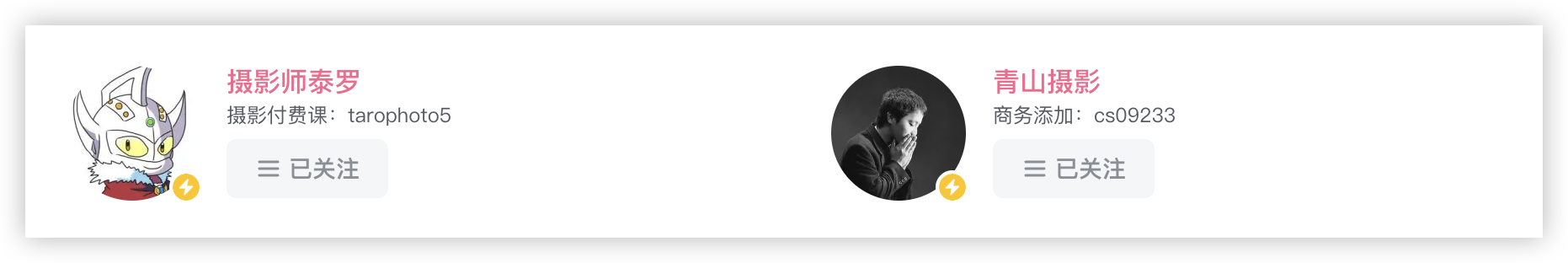 小红书和B站上都有关注一些摄影博主,其中看的最多,对我影响最大的是这些: