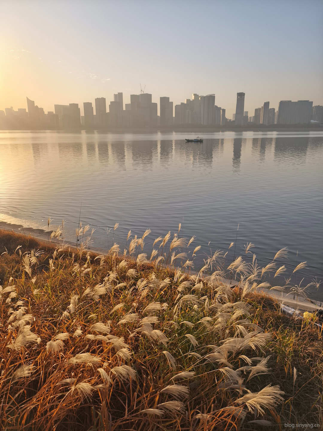 傍晚夕阳的光芒打在芦苇上金灿灿的非常好看。