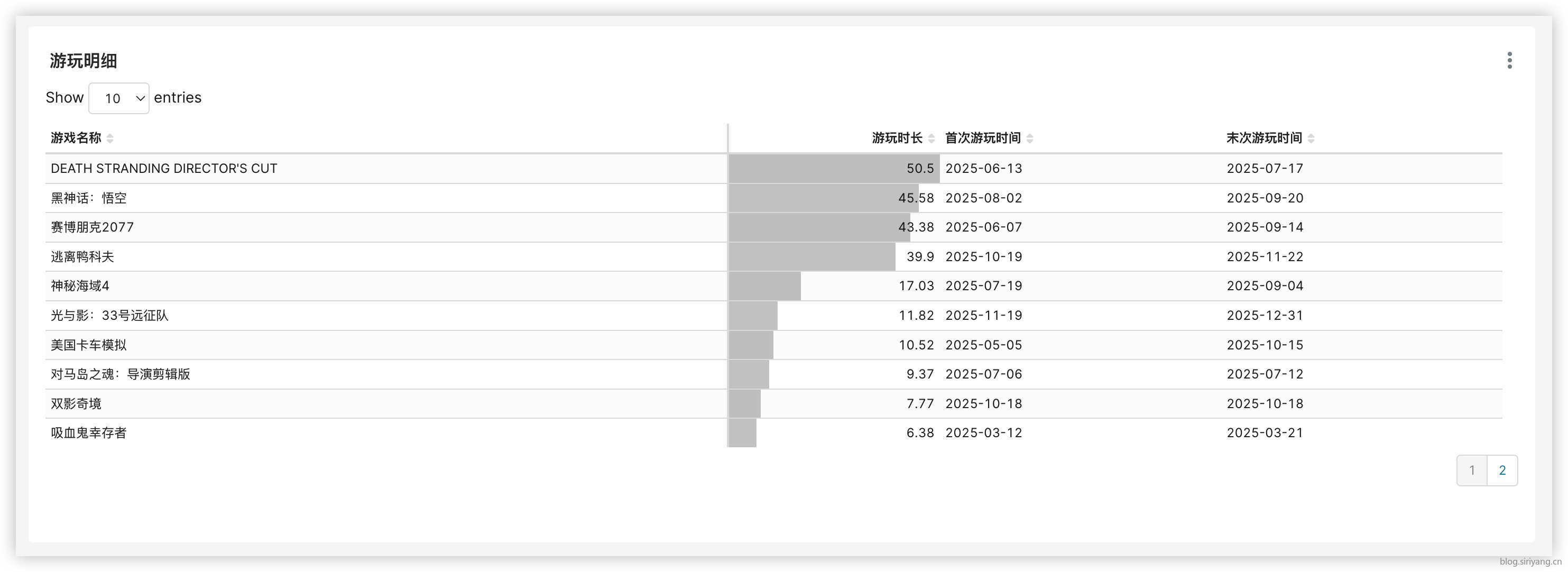 今年游玩最多的一款游戏是《死亡搁浅1》。