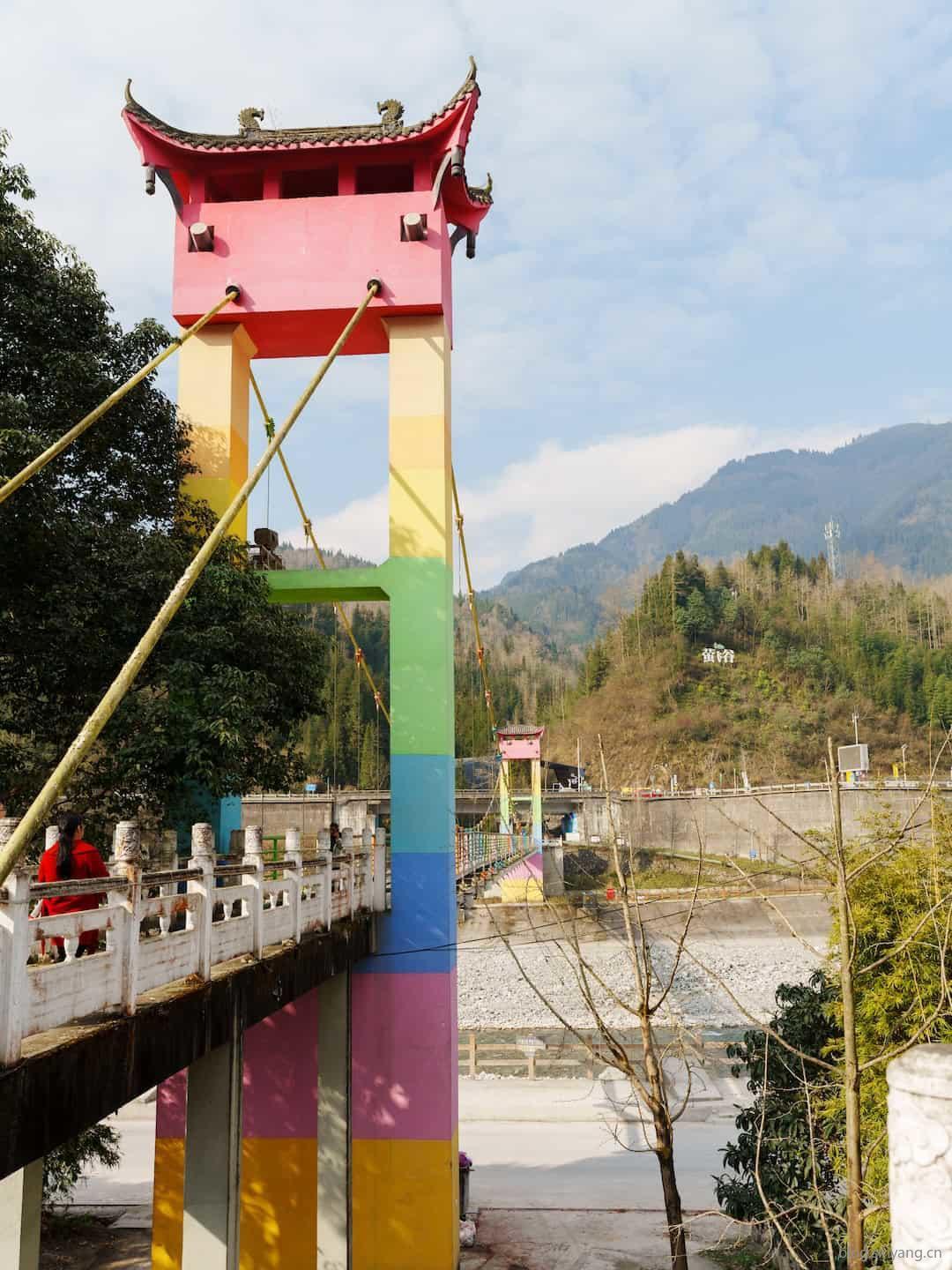 看完表演又去逛了对面荧飞谷森林景区,登上塔顶可以俯瞰整个清平镇的全景。河流虽然水量不大,但是水质非常清澈透明,泛着一些蓝绿色。