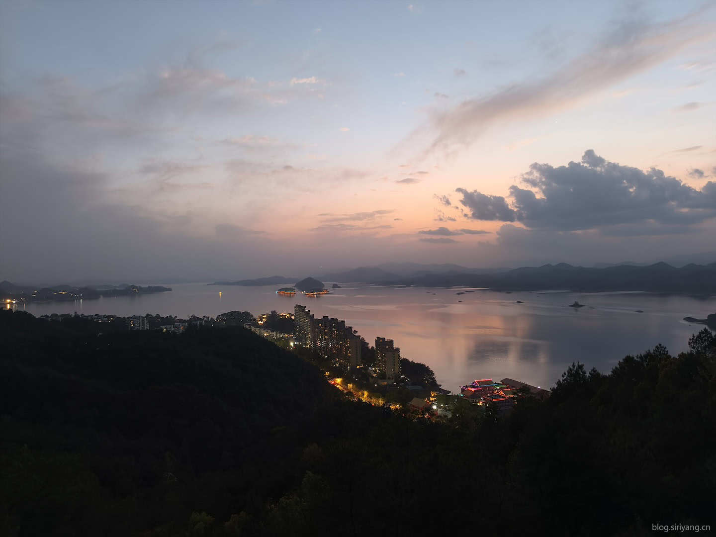 到千岛湖的当晚,我们吃完晚饭顺便去爬了下天屿山。找了条后山步道,连门票都没出就直接走到了付费区域,拍到了还算不错的晚霞。天屿山景区大门修了一下,和前年来的时候也有些不同了。