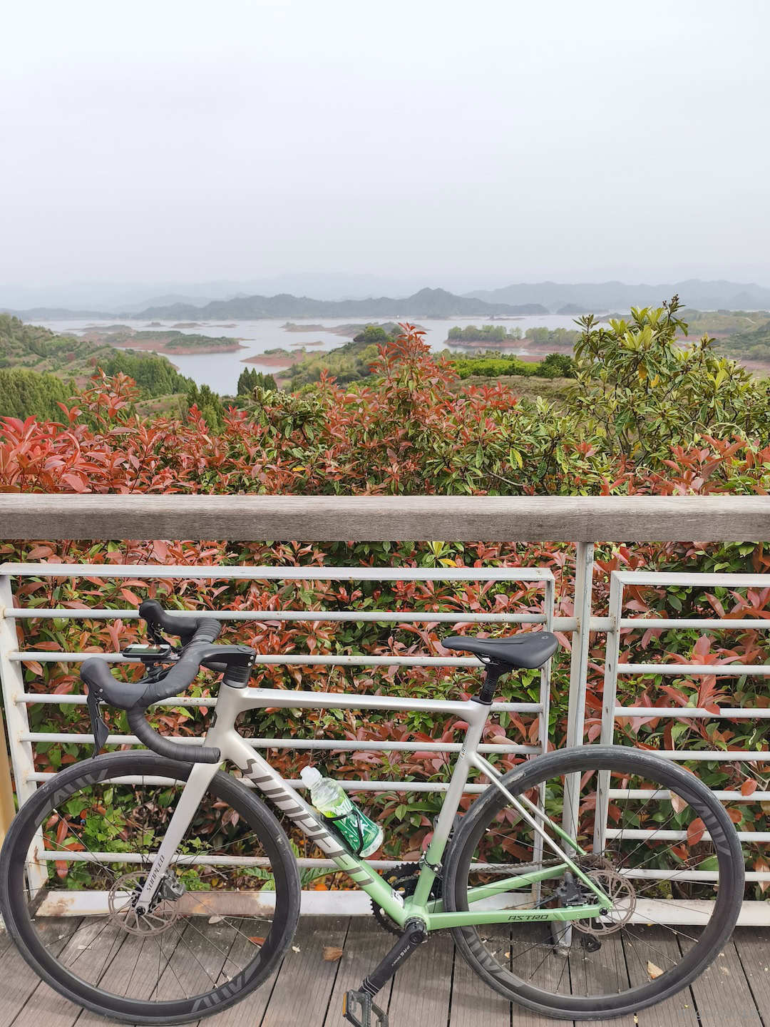 刚离开市区没多远路过一个观景台,忍不住停下来拍了几张照。在这里还帮一对骑行的老夫妻拍了合照。他们说是专程从南通过来的,看他们的样子应该有六十多岁了,也是佩服这个年纪还能来环千岛湖。不知道等我到了他们这个年纪还能不能骑得动。